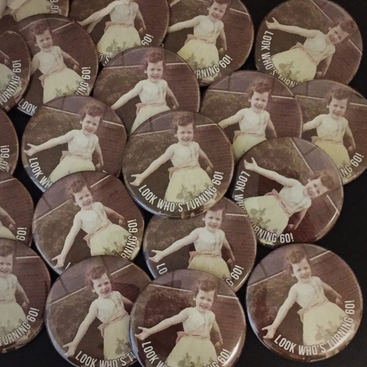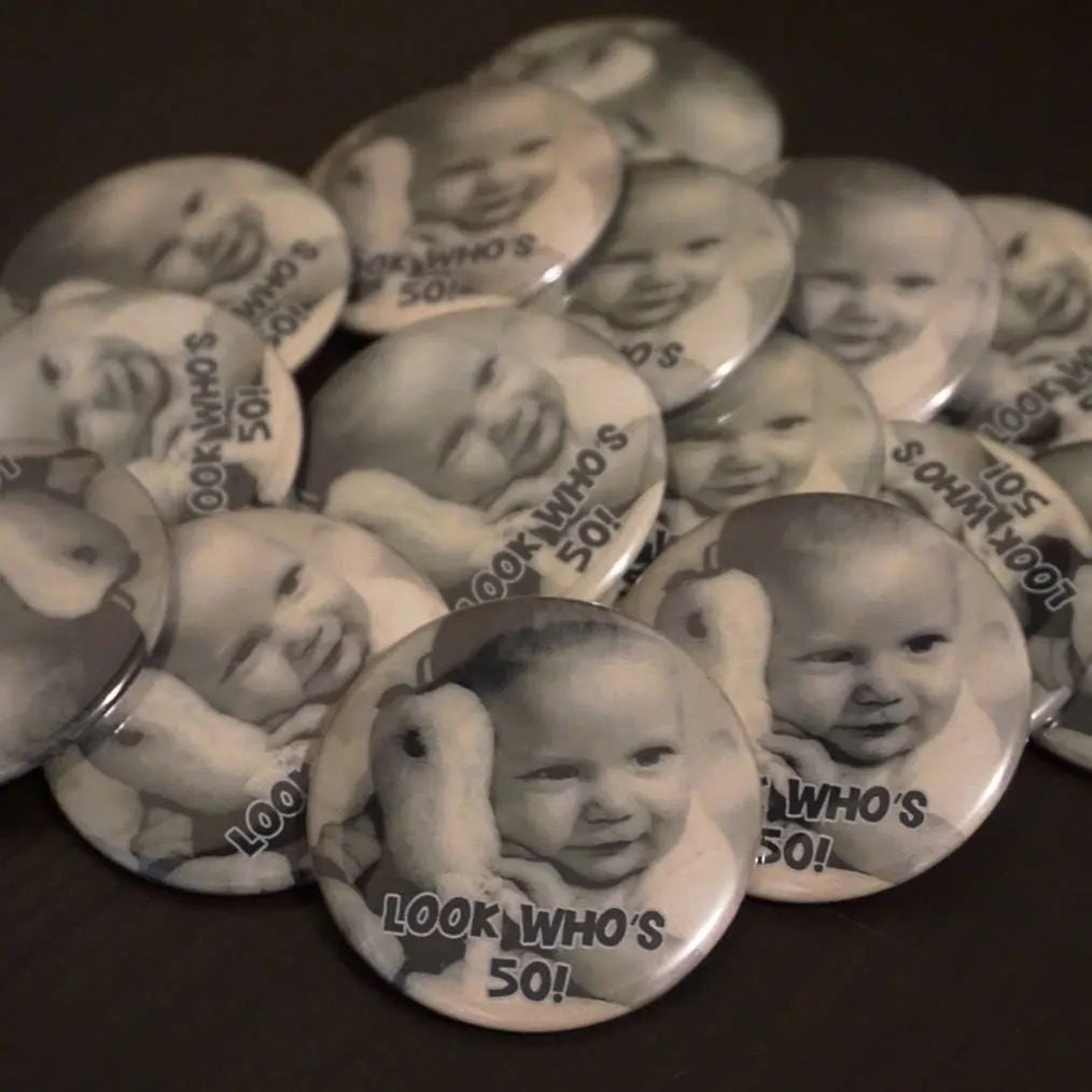 Unique 60th Birthday Gift: Personalized Milestone Photo Button Pins