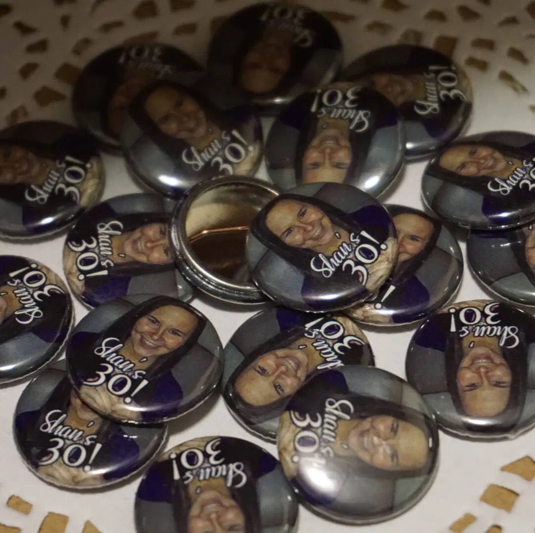 Custom Mini Photo Button Party Favor Pins - Personalized Gifts for Adults - Remembrance Favors - Milestone Birthday Pins 20 pieces