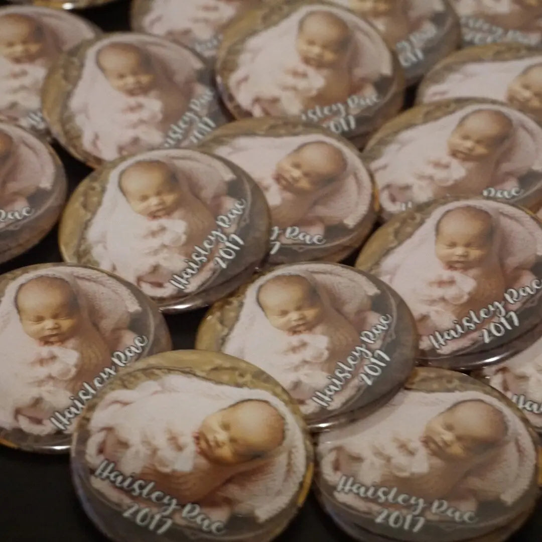 Every celebration needs Favors and sometimes the Best Party Favors are the ones that keep the party going long after the last bottle of bubbly has popped. These Photo Buttons allow you to truly honor that guest of honor with their image and a quote of your choosing. Not only do these photo pins make phenomenal party favors, they also act as great conversation starters among party guests as old friends meet new ones.