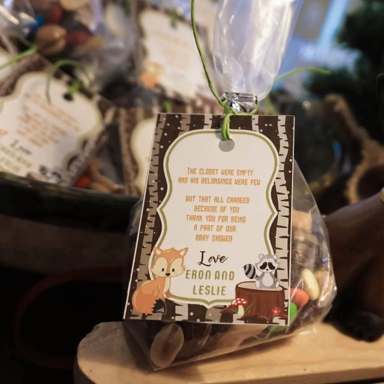 Transform your next event to a woodland wonder with these labels. Unisex color that will be perfect for any gender or even for any age.