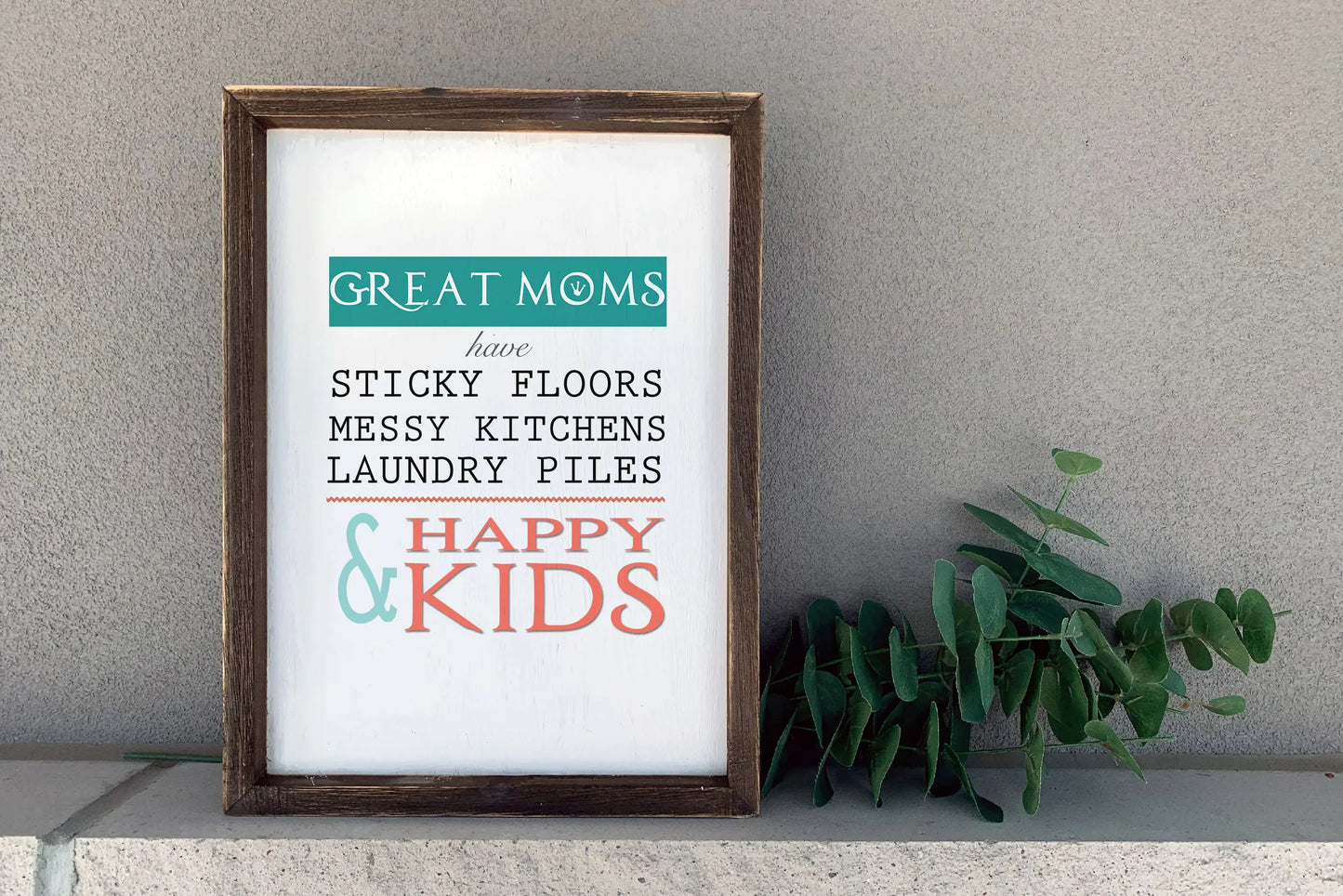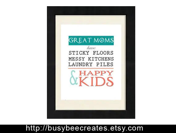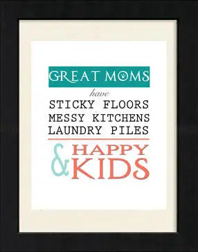 "GREAT MOMS have sticky floors, messy kitchens, laundry piles & happy kids"