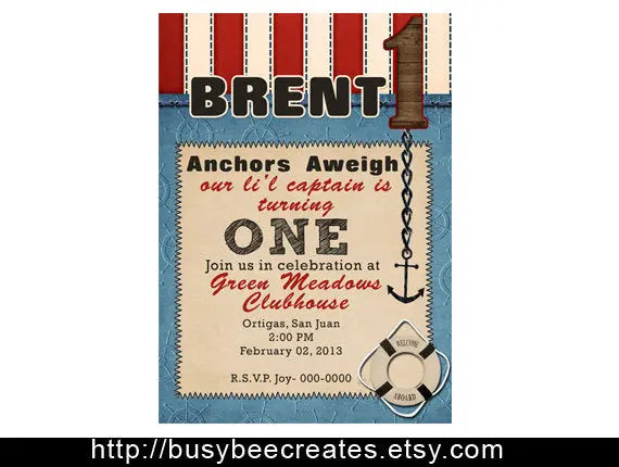 Nautical Invites - American Pride - Red White Blue Sailor Inspired Invitations or ThankYou Card 10-20 ct- CARDSTOCK