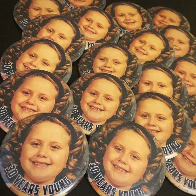 10 pieces of Button size 2.25 x 2.25 inches with pin (can add names)
