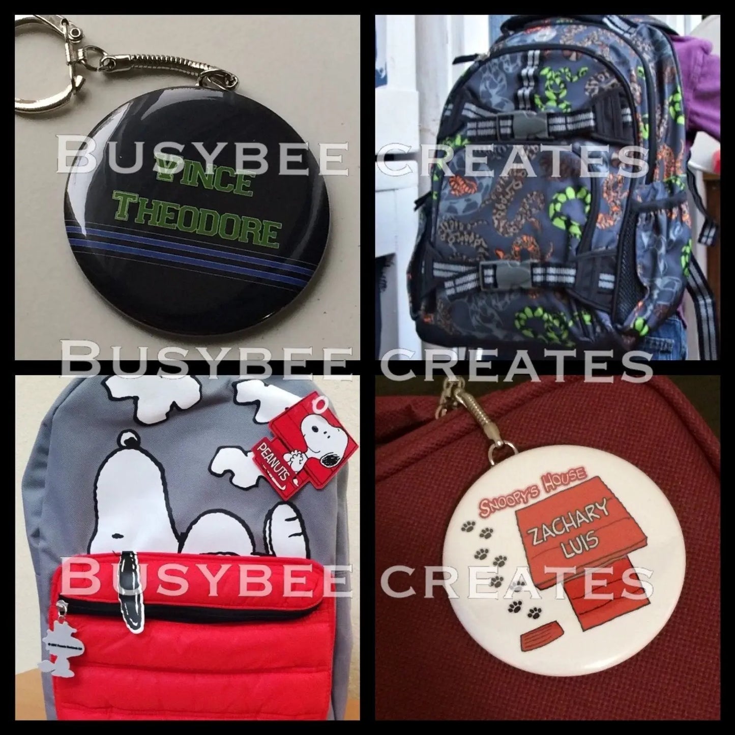 Personalized School Bag - Back to School Pack - Pin Tag/ Keychain - 5 pieces