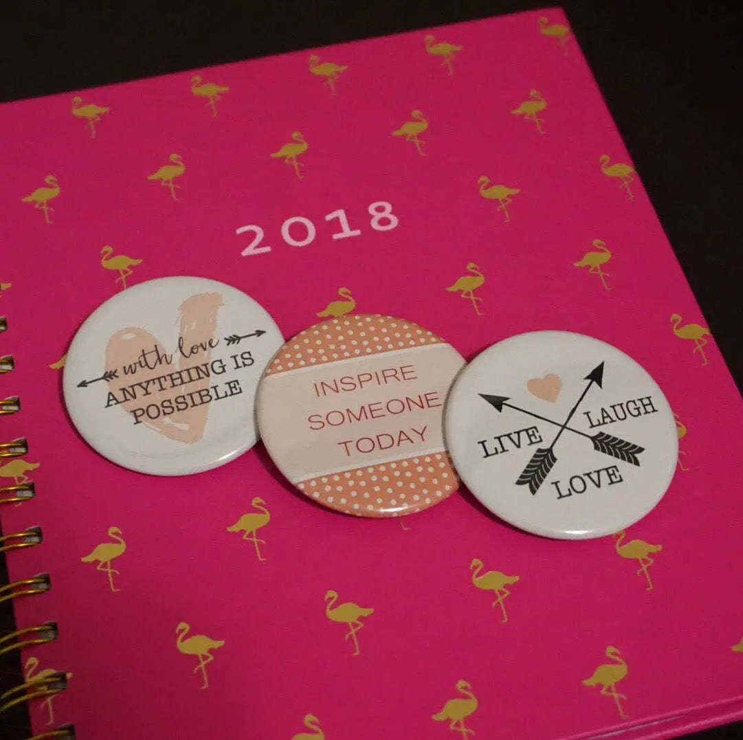Looking for non candy treats? These cute pins will be a perfect choice. Individually packed and ready to hand out. You can buy by sets or choose the button you want, it's entirely up to you. Inspire with a gift. Customize with a name, we can also do these in a different variety.