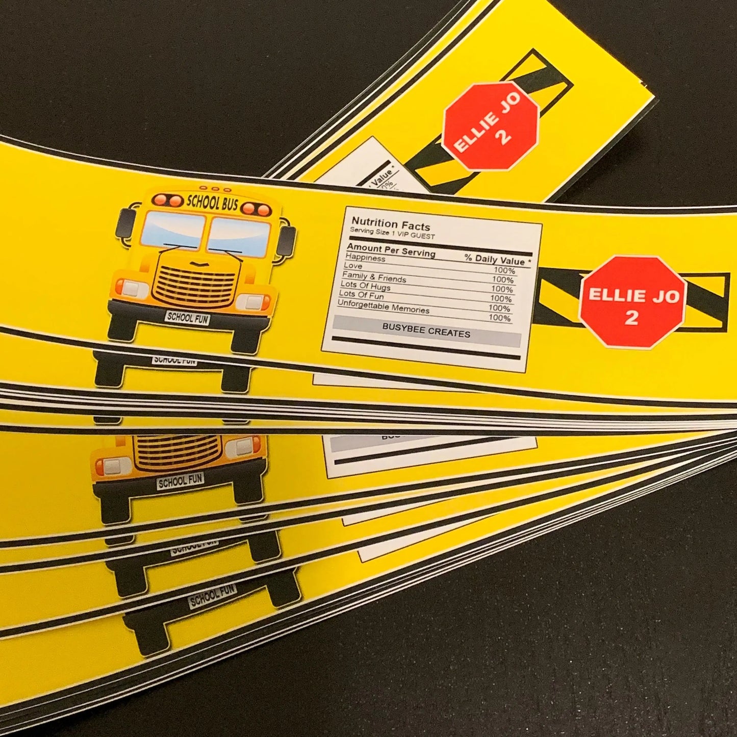 But that's not it! Their bright yellow color is very attention-grabbing, and the School Bus theme is a favorite among kids and adults alike. It gives your party an extra charm and makes it memorable. So grab your water bottle label now because it's never been easier to organize a School Bus themed party.